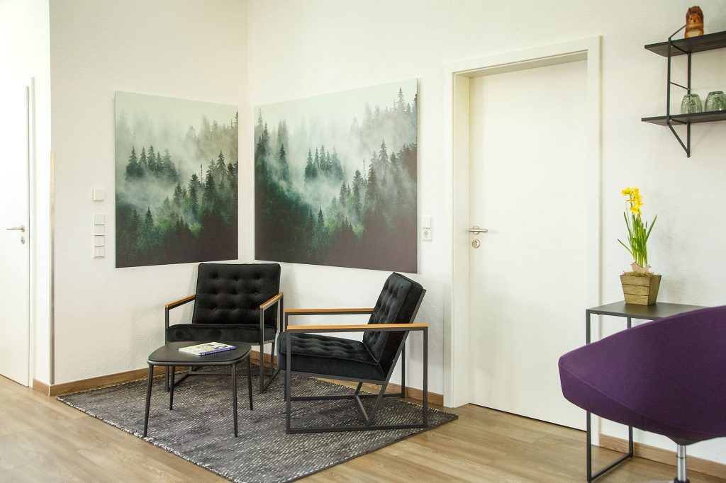 In meinem separat eingerichteten Privatpraxisbereich empfange ich Sie abseits des regulären Praxisbetriebs – modern, mit Liebe zum Detail gestaltet und ganz dem Thema Wald gewidmet. Hier ist Raum für Ruhe, Konzentration und individuelle Behandlung.